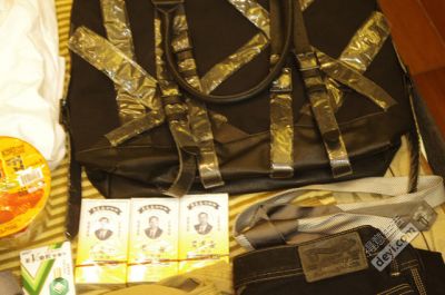 中间是给家家带的黄道益, 下面是5cm的领带和desiel的裤子。 上面那个5cm的包以前在国广看到过1000多RMB,这个购于沙田新城市广场,包包+领带+衬衣+马甲全部才1081HKD!!!