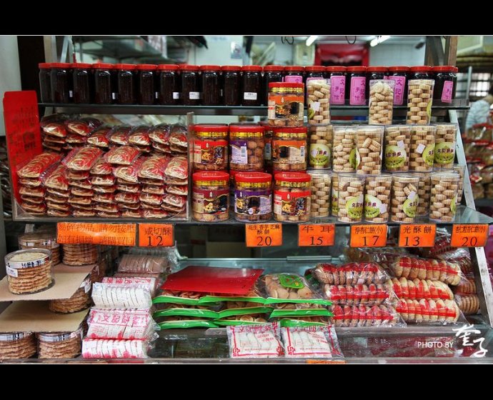 杏仁饼、牛肉干、猪油糕、光酥饼、姜糖、花生糖等等,你得一个个尝过去,呵呵。