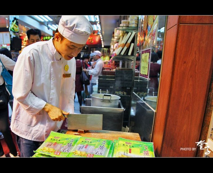 手信,广东话里指人们出远门回来时捎带给亲友的小礼物,并非按计划买来的大件或贵重商品,而信手捎来,故称“手信”。在澳门清平直街与福隆新街这两条呈十字形的小马路上,密密麻麻开着数十家“手信”商店,或大或小的铺面上,摆满了特色食品,从盒装的杏仁饼,散装的牛肉干、猪油糕、光酥饼、姜糖、花生糖等,澳门人将这些既是零食也是礼物的东西,统称为“手信”,所以便有手信一条街的叫法。