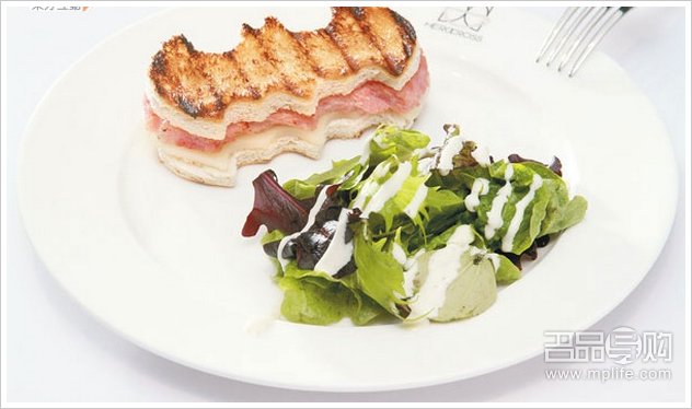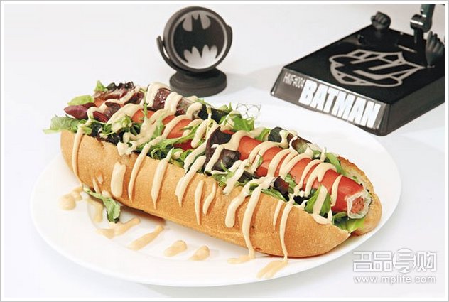 Batman标志的三文治,以芝士火腿作馅,分量的骰,加上沙律配菜,Fit晒细食女士。