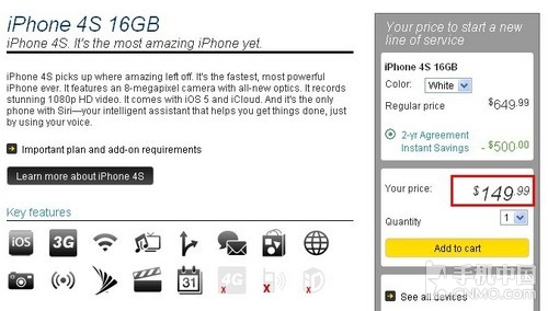 根据美国运营商Sprint网上商城的页面信息,Sprint版iPhone 4S 16GB的两年合约售价现为149.99美元(约合人民币955元),相比先前的售价下调了50美元。尽管Sprint方面并未透露具体的降价原因,不过笔者看来这显然是为下一代iPhone的上市提前做准备,而也这正好从侧印证了下一代iPhone即将发布的消息。