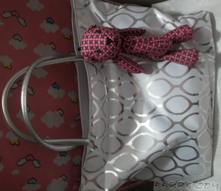 上个袋子,漂不漂亮,颜色很喜欢的,娃娃是单独买的,我给他们配一起了!