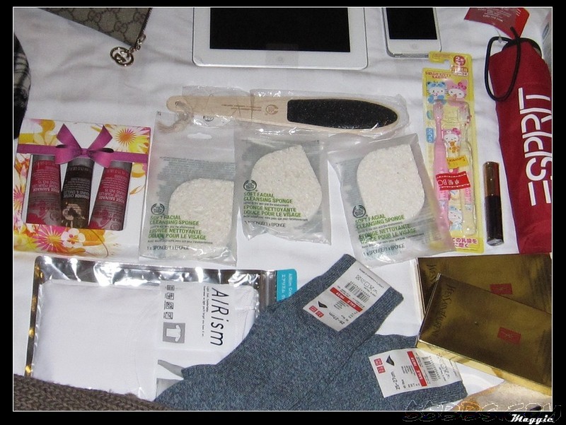 ESPRIT晴雨伞原价119HKD打8折,YSL的珍珠粉饼原价420HKD/盒,以前专柜报卡号都能打9折,现在取消的,不过借用55上一个MM的DFS卡打了85折,好人哪,我就入了两盒。