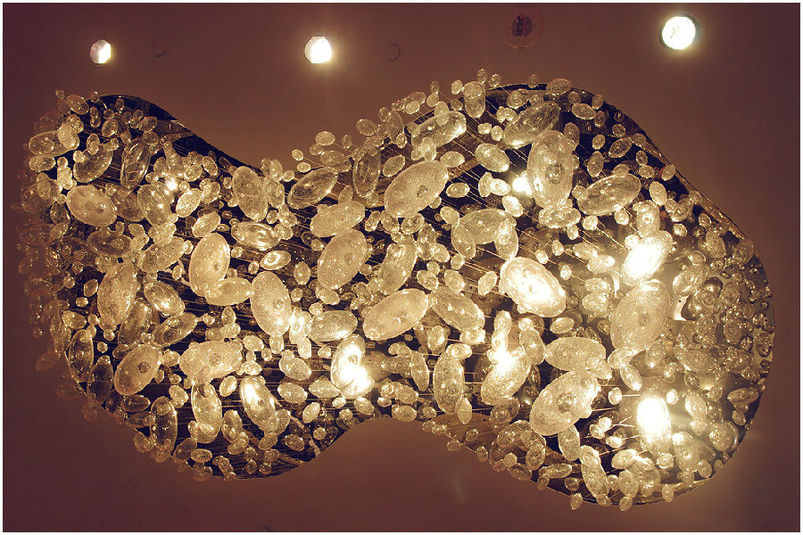新濠天地以水、蓝色海洋世界为基调,水滴、鱼群等细节体现融入在酒店的不同角落。最让我印象深刻的是其不仅高档与奢华,而是在败金味十足中艺术气息的浓郁。来自世界上著名艺术家、音乐家的作品几乎无处不在。穿行在由五彩的LED灯光照射下曲饶迂回的走道,就像行走在梦幻的宫殿一般,美轮美奂。