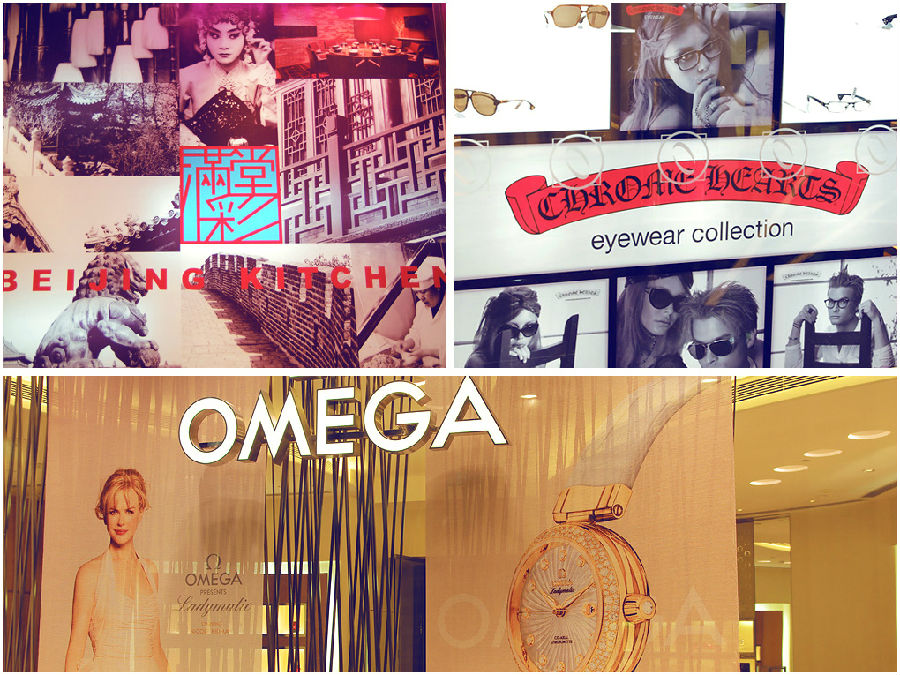 新濠天地的购物区汇聚了来自世界的时尚名品。在此可抢先得知今季全球最流行品牌的新品,各顶级时尚品牌、高档化妆护肤品和精美珠宝、腕表等,均在橱窗中亮出最有格调的宣传画,就连画面中的模特儿也在争奇斗艳。空气里弥漫着满满的时尚气息。