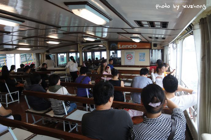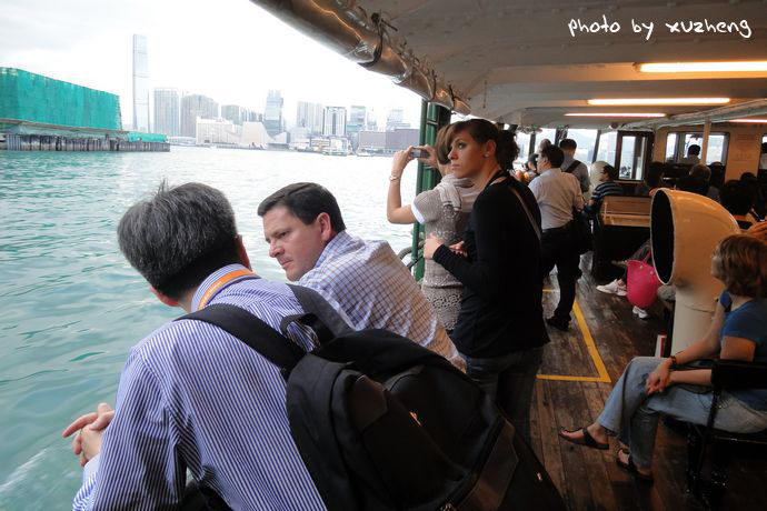 与其他现代化交通设施相比,天星小轮显得有些简陋落伍。但是,磨损的地板,木质的坐椅,塑料的挡雨,带响的风扇,轰鸣的马达,带给人往日的心境和一番踏实。再看天星小轮上的人们,要么静静望向舱外,要么按动手中相机的快门,品味着眼前的奇观,留下永久的纪念