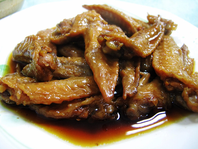 荣记粉面除了车仔面,卤水也是响当当的,最有名的是卤鸡翼尖。卤鸡翼尖嫩滑入味,鲜咸得宜。