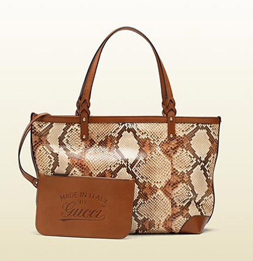 此款为“gucci craft”中号手袋,配以可拆分口袋。蜂蜜色蟒蛇皮,配以浅棕色真皮滚边。可拆卸的真皮顶部拉链袋,配以GUCCI复古风格商标的刺绣标志。