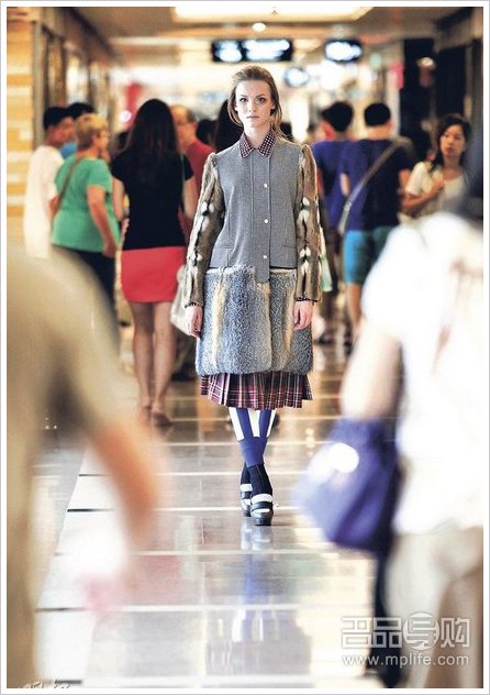 没有几个品牌能像 Marni 般有如此清晰明确的风格形象,上世纪 50、60 年代的 pattern 连身裙、奇怪剪裁的松身上衣、对比色彩的恤衫短裙或是染色的毛毛皮草等,总是带点时髦甜美的感觉,却不会过分性感,说明了 Marni 从不是强调模特儿修长身形的「主流」选择。这个 Winter edition 在秋冬主季之前推出,其实就是早秋系列,整体看来没有特定主题,也很少品牌的早秋系列能像它有 30 几套衣服这么多,因为品牌原意就是要让人 mix and match,将不同颜色图案拼凑出新意,当然愈多愈好。要眼花撩乱的有蓝白直间 leggings、花恤衫、苏格兰裙、pattern 毛衣等;要简单易衬的有净色皮大衣、黑色长裙、格仔上衣等,全都是由 layering 拼凑出来的造型。Marni 营造出来的从来不是要人「跟到足」的 outfit,而是要让人从中选到至少一两件可以用来配衬 basic wardrobe 的衣服。