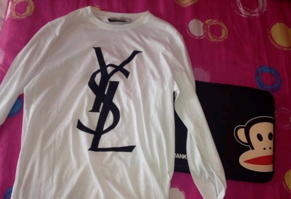 ysl TSHIRT香港都断货了,只有男款长袖了,虽然不好看,但是还是买了2个。
