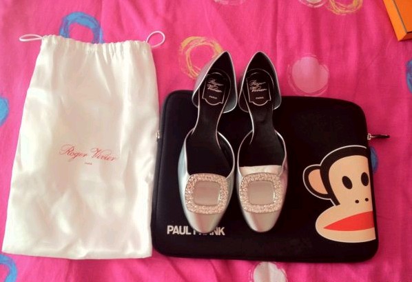 RV的鞋子,几乎尺寸都断货,我拿到了这个银色的,黑色的带钻的没有尺寸的。买4万港币才有积分卡.鞋子8000多港币,真心贵啊。