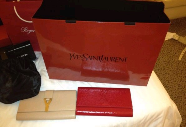 2个ysl手包,红色送我朋友,我留难看的白色的,我太伟大了。白色6000多港币,红色4000多港币