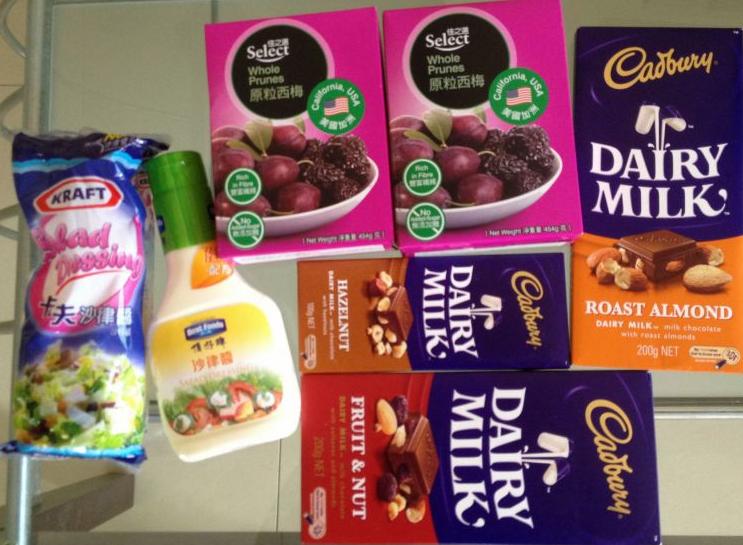 吉佰利巧克力,大排的HK31.9元,小排的17.9元,西梅2盒HK35.9元,最抵买的是顶好牌沙律酱,之前在港货店里买过RMB14.5,现在百佳特价HK9.9元,卡夫沙律酱的HK19.6元
