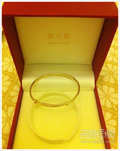 周大福:金的镯是周大福的也不重,也就16g,这款戴着实用些,不容易断,当时还不到400元/g买的;和田玉的翡翠镯子是我爸妈托人在新疆买的~
