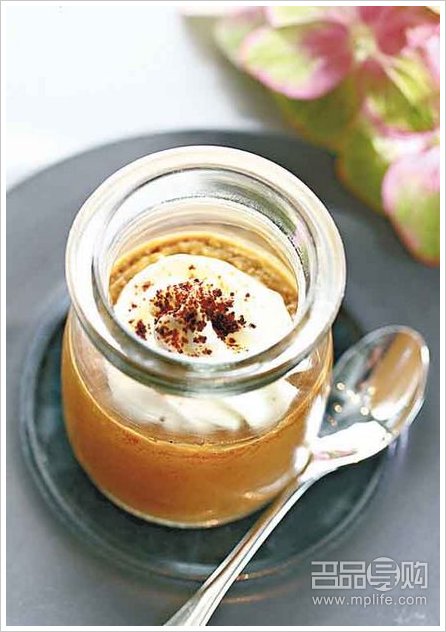 底层是焦糖布甸,加上拉面用的赤味噌,最后再洒上干味噌粉,令其甜中带咸。