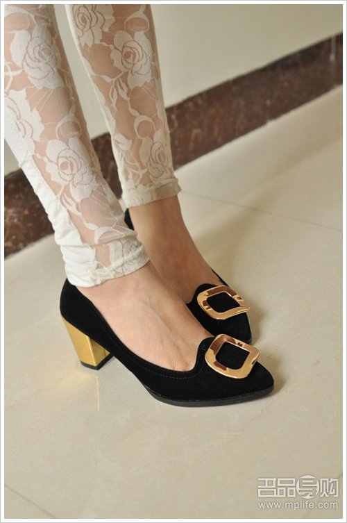 都市OL优雅风浅口粗跟金属扣高跟尖头鞋,上脚超显瘦,简约金属扣点缀效果,优雅大气~