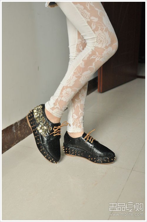 金属铆钉水钻系带厚底尖头鞋,朋克风魅力十足,上街很是惹眼哦~厚底穿着一点也不会累脚~