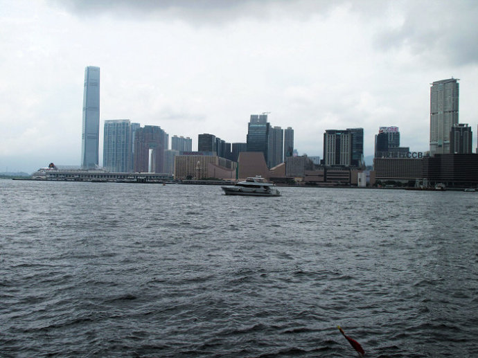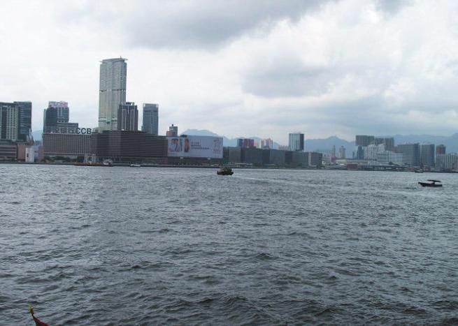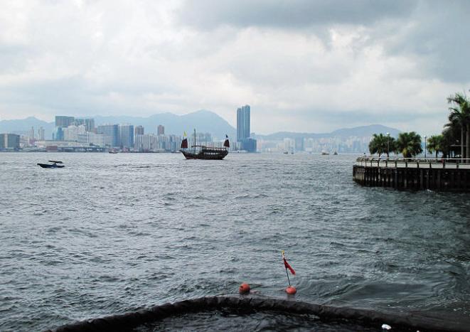 眺望对岸,九龙尖沙咀建筑清晰可见。