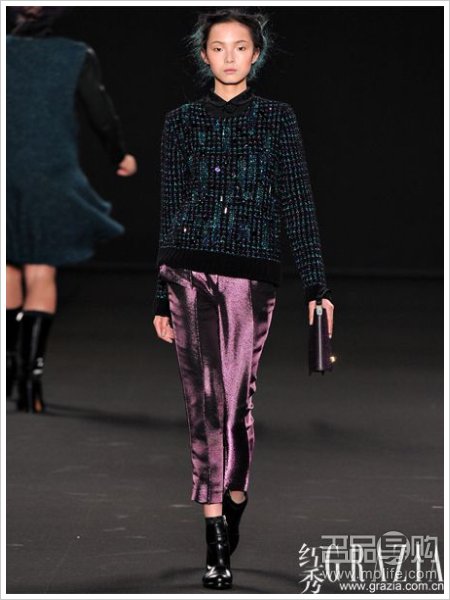 毛衣时秋冬必须的单品,不过往往也是最一成不变的,深色系的毛衣是永恒不变的主题,今年我们就是要在色调上来点突破,金属色泽的毛衣必能颠覆你对于毛衣这件单品的时尚印象。图为:Vanessa Bruno2012秋冬系列。