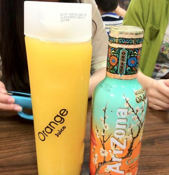 一瓶橙汁 一瓶绿茶 挺有意思 超市买的