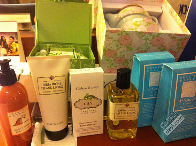 Crabtree&Evelyn家的东东用着特别滋润,从左边起手霜、身体磨砂膏,新品百合味手霜,沐浴露,脚霜