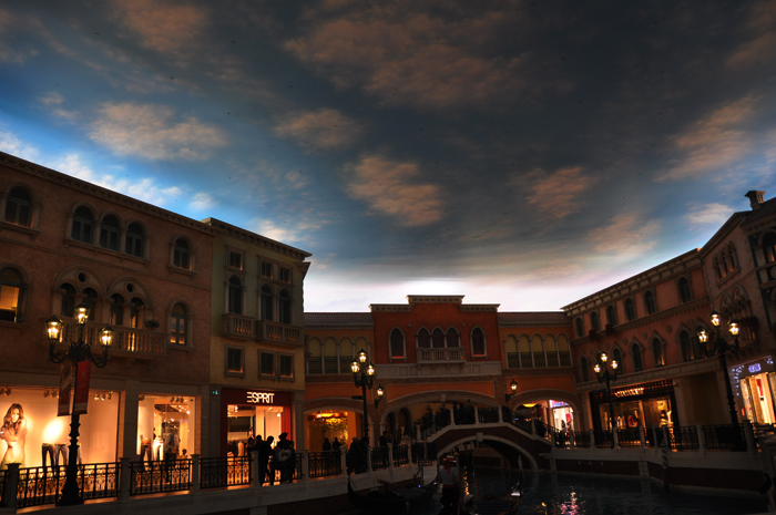 澳门的不夜城。威尼斯。那蓝天白云,是假的哦。