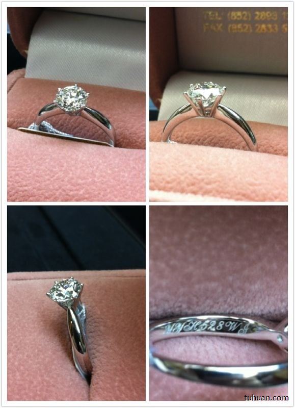 结婚的时候手头比较紧,那个时候就跟老公发下宏愿,等咱以后有钱了要买个1克拉回来带带,老公说在我30岁之后一定要完成这个愿望,等啊等到了今年我跟老公要升级做爸爸妈妈了,老公看我又吃不下又吐的很可怜,就说要不咱们就把计划提前吧,于是有了这枚戒指。我纠结呀纠结,到底是买个什么样的呢,在途欢里咨询了张组长又问了王小姐,确定我要买的石头如果去某福或者生生差不多要10W港币,啧啧好贵呀,觉得真是肉疼,然后想想好像可以买裸钻,或者不是这种品牌的要便宜不少,犹豫了好久,后来终于找到了这家店,老板娘是我们认识的,问了价钱之后巨大的价格差终于让我下定了决心。
