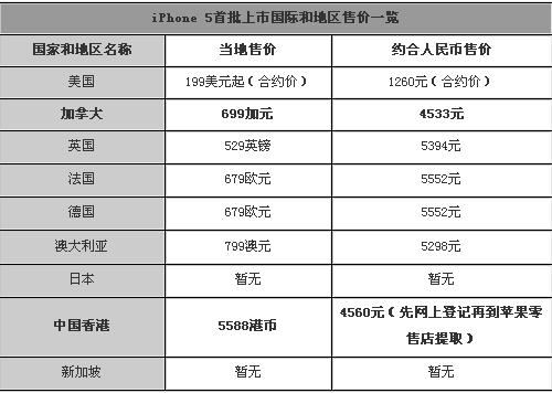 最后我们汇总一张列表,更为直观的展示iPhone 5售价的各地对比iPhone 5首批上市国际和地区售价一览