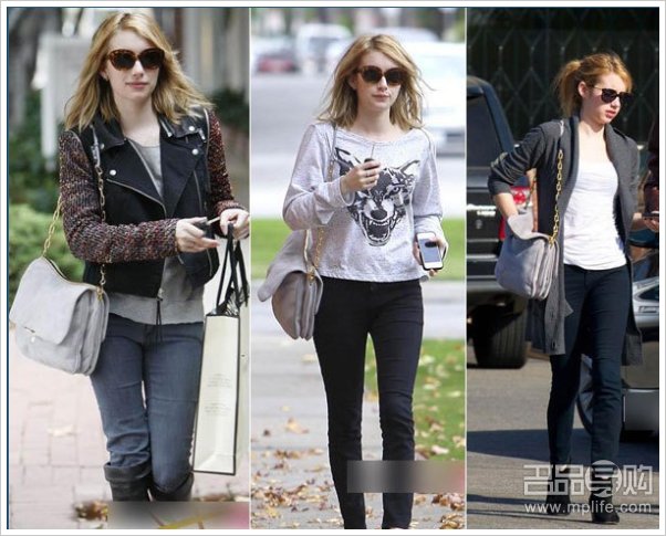 Emma Roberts对这两个品牌包包的宗旨都理解的不错,从搭配上来看,确实百搭!