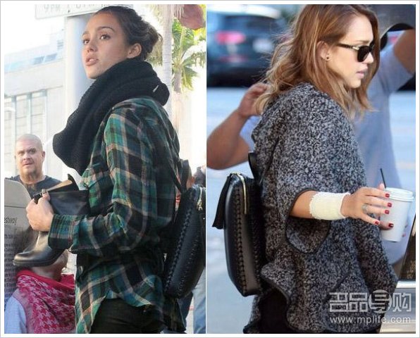 杰西卡·阿尔芭 (Jessica Alba)很喜欢这款黑色小背包,也看的出来辣妈平时也很休闲随性,所以这款包包搭配休闲衬衫是不错的选择。当然杂色斗篷针织衫也很不错,但是略显繁琐,所以相对来说前者更随性一些!Wendy Nichols 的包包在这位辣妈身上可着着实实的体现了百搭的特色!