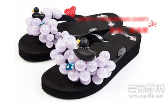 宋茜韩国品牌限量款钻石黑鸭子葡萄拖鞋