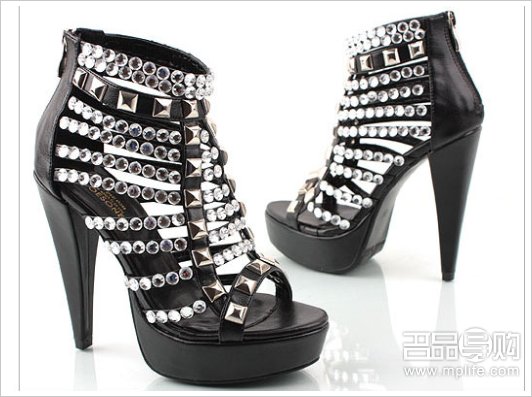 宋茜雪莉sulli hot summer同款铆钉亮钻高跟鞋