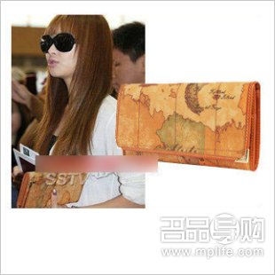 宋茜机场被拍到用的一款地图长款钱包