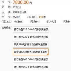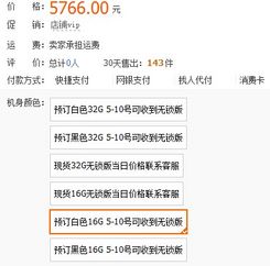 根据是否专业经营,淘宝店铺可分为专业店铺和个人店铺两类,个人店一般是在国外生活或者留学的个人提供的代购服务。根据是否有现货,分为现货店铺和代购店铺两种,现货店铺一般是从国内发快递,而代购店一般是从国外直接快递到买家指定地址。从以往新iPhone价格来说,现货要比预订的价格要贵大约50%。因此如果想率先体验新iPhone,预订会比买现货要实惠。