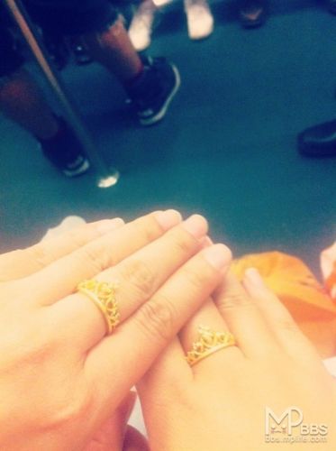 周大福今年新推出的白金的款一个镶钻石一个镶红宝石,发给你们看看。。哈哈哈我们旅途中她们被我中了皇冠的草