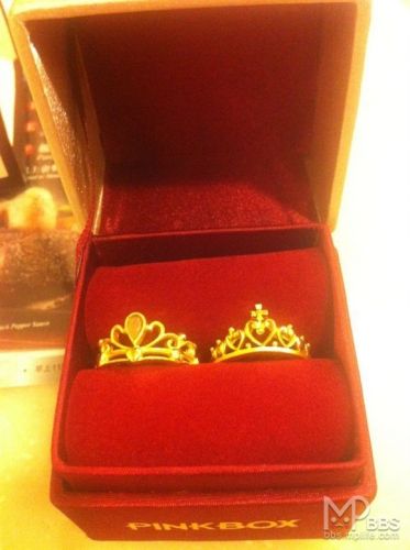 这两个皇冠,我想大家都跟我一样纠结的。。我果断两个都拔草!~PS:pinkbox的皇冠系类,就是上面镶水晶的最大的指圈号只有15号,我本来买了想带中指的,结果都带不进去,所以胖手MM要三思呀!~