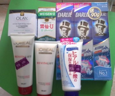 JUJU洗面奶:52HKD 欧莱雅:35HKD 玉兰油:56HKD 购于雅施 黑人:27HKD3盒 胃仙优120HKD 购于华润堂 ... ...