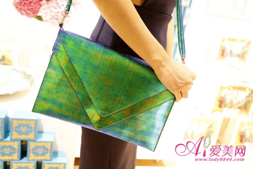 会变色的包包是不是很拉风?随着光线和角度的变化在蓝色和绿色之间转换。