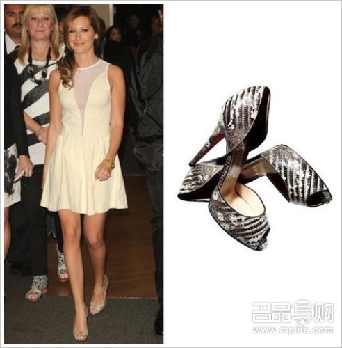 Ashley Tisdale穿着Christian Louboutin “Madame Claude” 鱼嘴红底鞋。