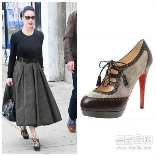 Dita Von Teese穿着Christian Louboutin “Mamimo”红底鞋。