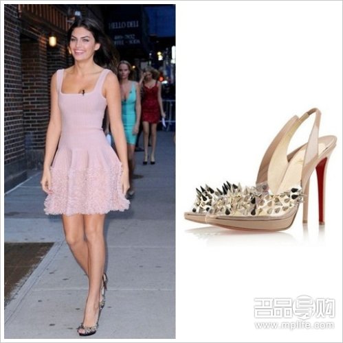 Audrina Patridge穿着Christian Louboutin “Engin”铆钉红底鞋。