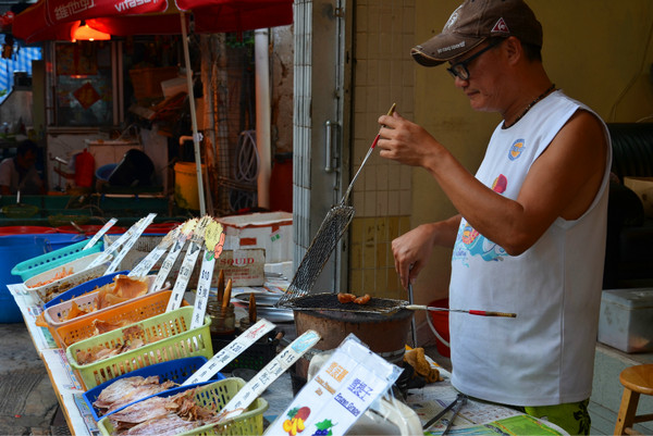 老头子,性格很开朗,没两下攻夫,老头子就滔滔不绝的说起了他的故事(或许与他交谈的人实在不多)。老头子今年83岁了,原籍宝安,3岁死爹,10岁死娘,15岁就迁至大澳以放牛为生,由于没文化,收入底,至今未婚(HK人称之为王老五),无儿无女,现今靠政府众援及好心人暂借的三分耕地为生,虽说贫困潦倒,但他脸上始终挂着笑容。老头子还为我讲述了不少大澳的故事...