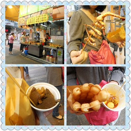放完行李后我们就出去逛逛,莎莎也去看了下,败了些面膜,面膜超重的,拆了盒子铺在行李箱体层,还在一个阿婶的小吃门面买了一串鱼蛋一串脆脆肠14HKD。