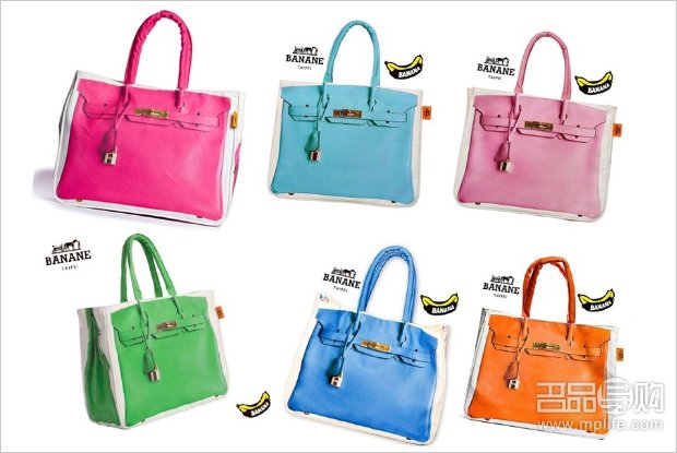 最成功的山寨Birkin2010年的春天,台湾自创品牌“BANANE.TAIPEI”推出了“BANANE BAG”系列环保袋。整体以帆布为材质,由于包身的图案为爱马仕BIRKIN包造型,而备受追捧,但同时也争议颇多。3D的Birkin印花确实很立体,每一个面都可以看得到Birkin的全貌,连包底也没有错过。除了包的手提以外其他全是在帆布上的印花,十分逼真。经过台湾热播综艺节目介绍之后,迅速火遍两岸三地,这就是后来大家都知道的娇蕉包,由于明星们的热捧这款包也一度断货,甚至被女星大S当做婚宴的谢礼赠送给来宾。