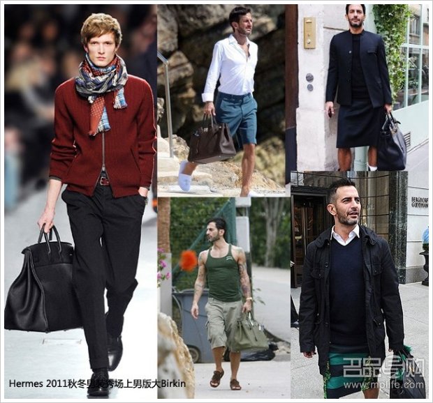 BIRKIN包毋庸置疑是女人一生的梦想之包,抛开其高额的身价、特殊的身份彰显以及卓尔的做工不谈,单单就其冗长的waiting list来说,想拥有一只BIRKIN需要耐心与财力。正因BIRKIN十足的美丽也掳获了MARC JACOBS的亲睐。在MARC的演绎下,BIRKIN成为一款极具功能性与实用性的男士皮包。