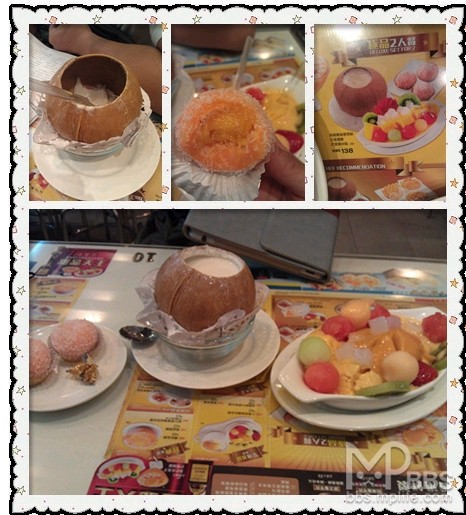 路过许留山,忍不住了,点了个2人套餐138GB,燕窝雪蛤炖椰子(超多雪蛤,真担心他们亏本)+芒果糯米糍(里面大大的芒果馅)+水果捞(芒果冰沙是真的芒果打出来的,味道超正!)。