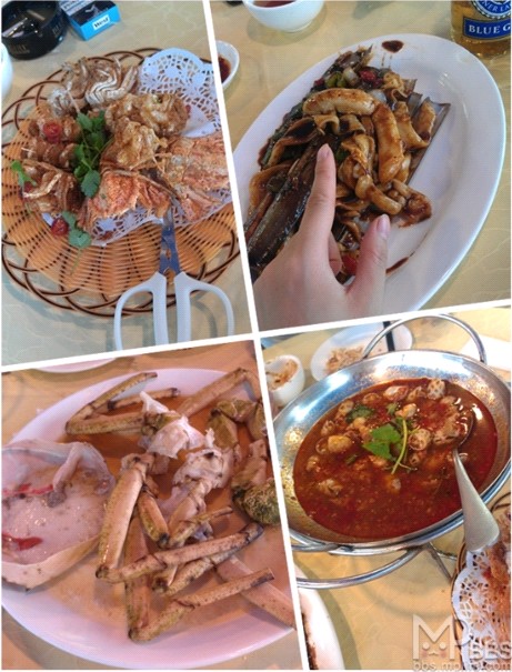 我们2人点了4样(蛋白蒸雪蟹、避风塘蛏子、椒盐濑尿虾、海螺),个人最喜欢那个怪兽级的蛏子,20CM多长,2个手指粗,可是,很嫩哦。迟到最后我饱到想吐,是看到海鲜就想吐。回到上海也是一样。只怪自己太贪心了。