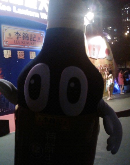 在此期间,听到有人说了一句,挺好笑的,也同大家分享一下:迎面走来了个李锦记的酱油瓶(是个人穿上酱油瓶的衣服,下面图也有它,看你能不能找得出来),然后有个女的就大声的开玩笑说,看到世界末日真的到了,现在连李锦记的酱油瓶都会自己走了。(个人觉得挺好笑的,如果你们觉得不好笑,不要砸我哦。。)