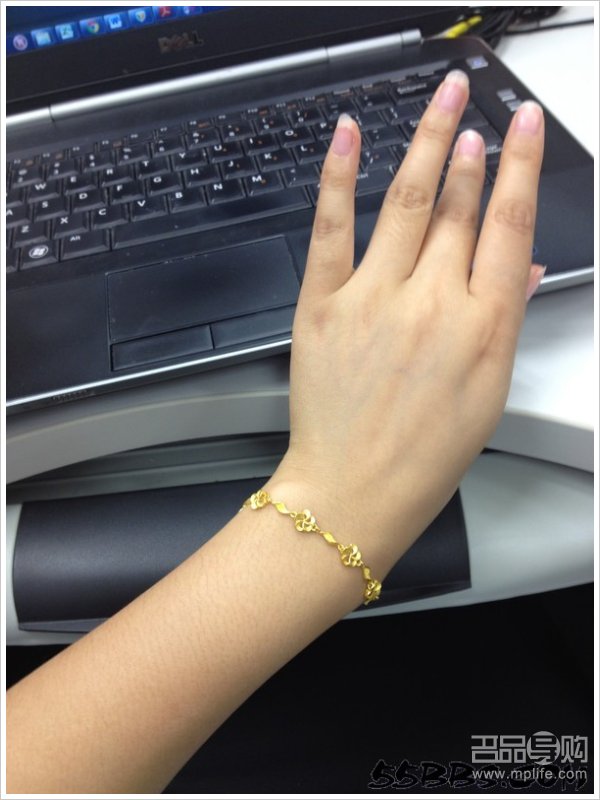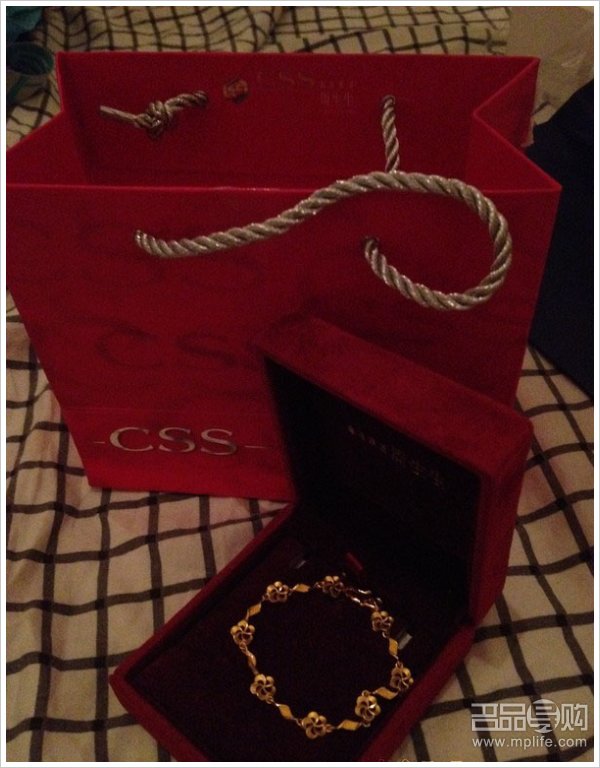 周生生:购于尖沙咀,万足金手链,纯度99.99%,重6.7g,饰工费打了7折,总价折合人民币2500