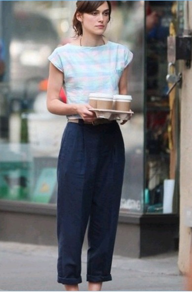 凯拉·奈特莉卷起的休闲裤与乐福鞋,典型的街头休闲风。